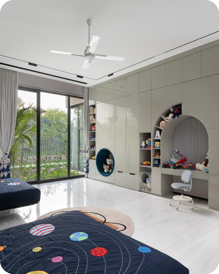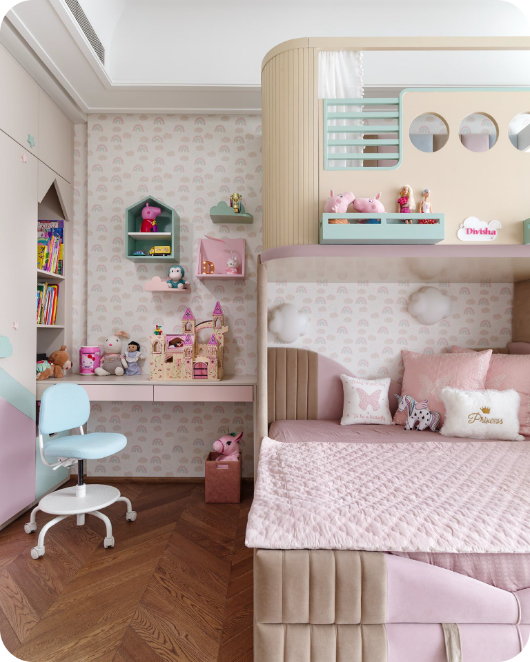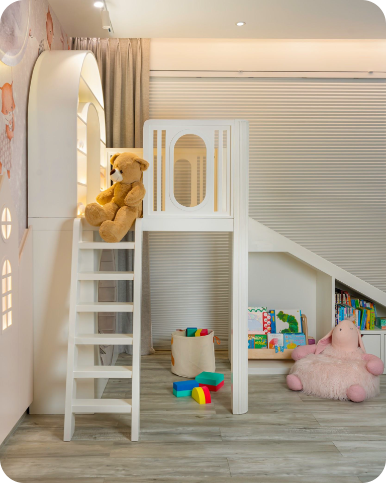 We believe every child is unique. That's why we create custom spaces tailored to their personality. At Thinkcutieful we don't just design incredible kids' spaces; we build them from the ground up. Our in-house manufacturing facility in India crafts bespoke furniture and installations using high-quality materials that are safe and durable.